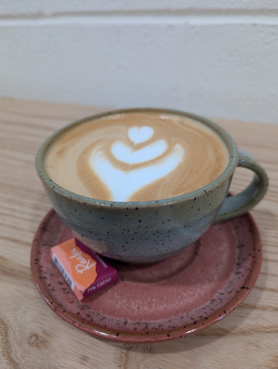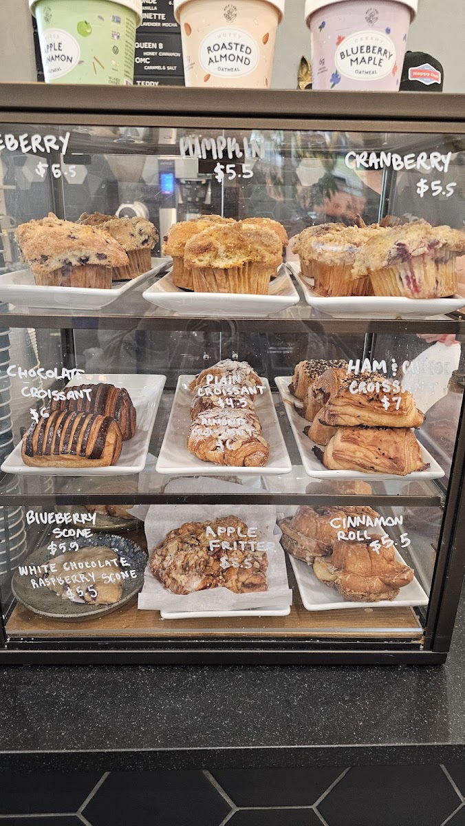 Great coffee, muffins, atmosphere, and staff. We'll be back soon. I got the Peach Cobbler Oat Milk Latte and it was better than expected. Unique and well balanced.