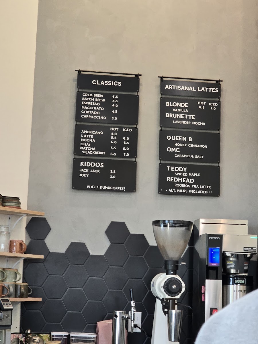 Kunu Coffee Co. is a vibrant coffee shop located in Cornelius, NC, at 18644 W Catawba Ave. With a menu that blends tradition and innovation, Kunu specializes in high-quality brews that range from classic Cold Brews to artisanal creations like the Blonde and Queen B. Patrons rave about the precision of their espresso drinks, where the art of coffee-making shines through every cup.